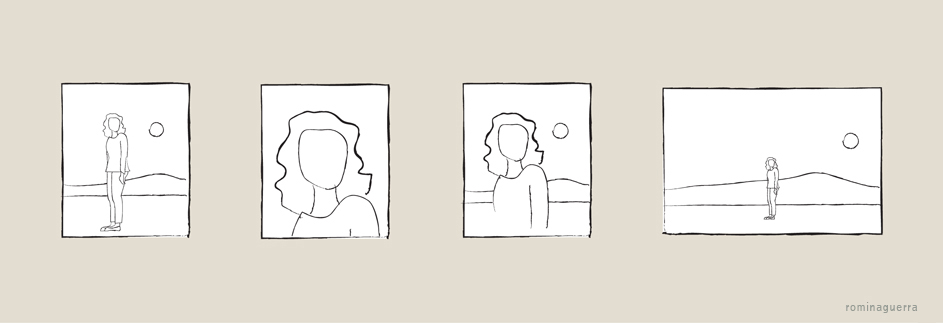 Este sistema toma sus bases en el encuadre del lenguaje del cine y la fotografía. Por ejemplo, un plano general muestra el contexto y el total del sujeto. Un primer plano muestra el rostro del sujeto hasta los hombros. Un primerísimo primer plano muestra un detalle del cuerpo, como un ojo. Plano entero encuadra al sujeto de la cabeza a los pies. El plano americano o 3/4 muestra el sujeto hasta las rodillas, etc.
