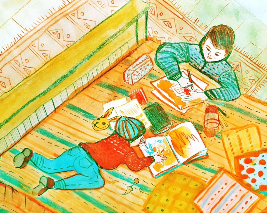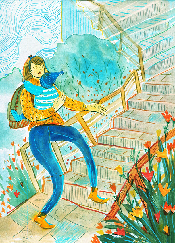 Ilustraciones en diferentes técnicas y formatos, a través de las cuales Romina Guerra rescata la belleza y emociones de las situaciones cotidianas de la maternidad.