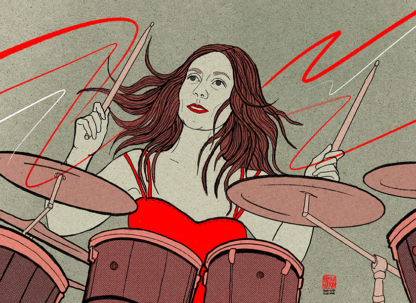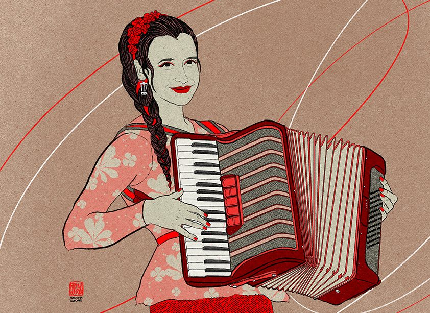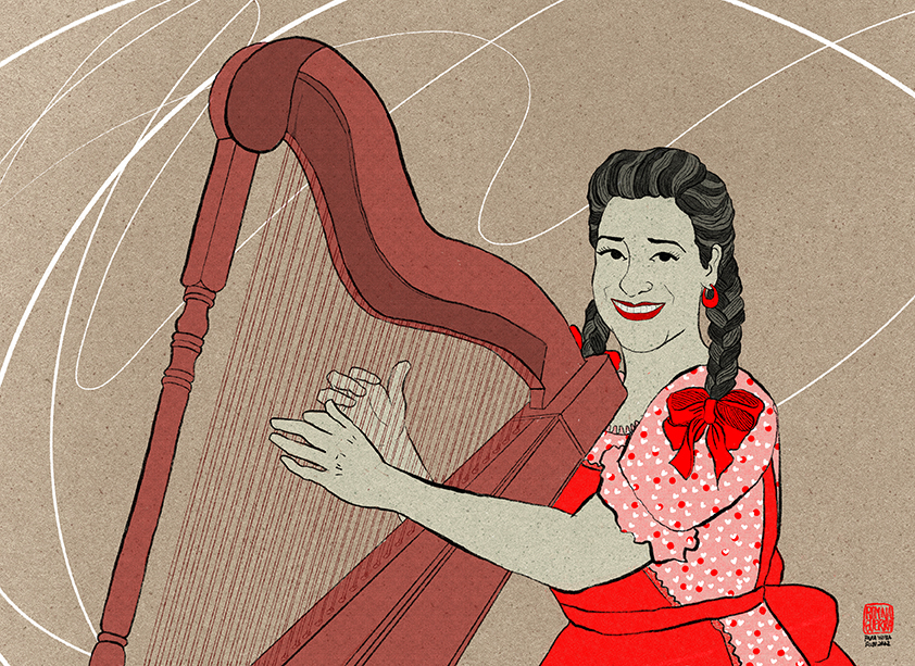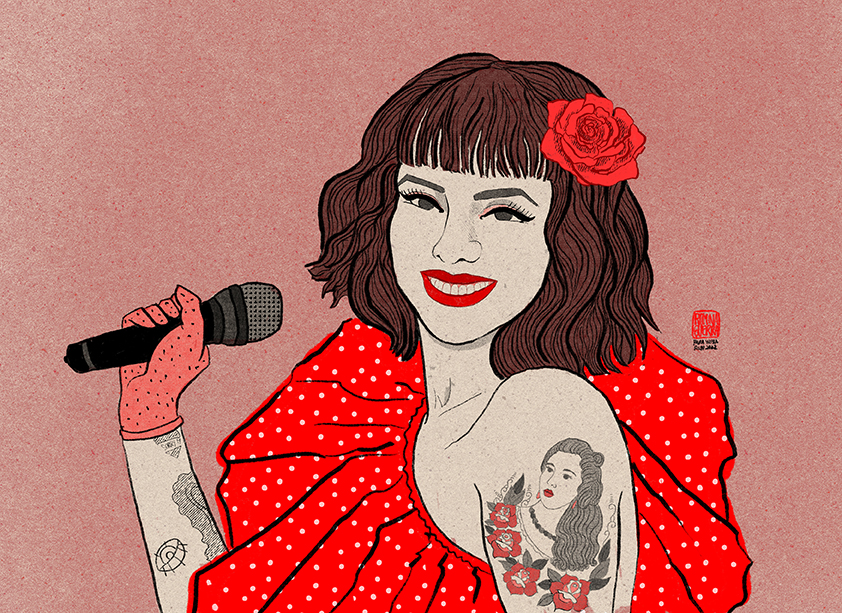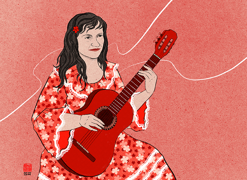 Retratos ilustrados con un estilo que se inspira en las xilografías japonesas del periodo del ukiyo-e. Romina Guerra realiza un tributo a músicos, artistas, escritores, científicos y deportistas chilenos y argentinos.