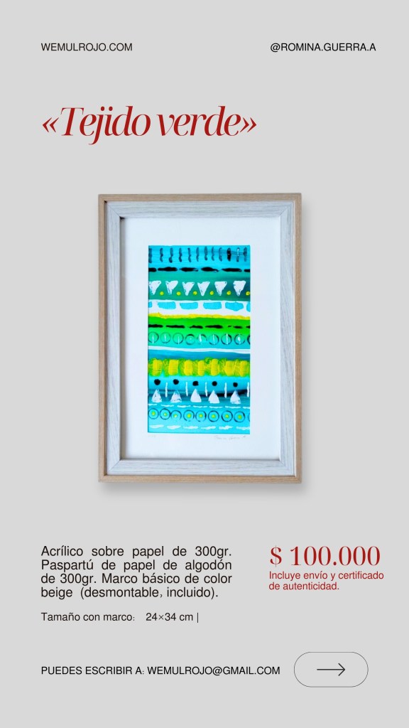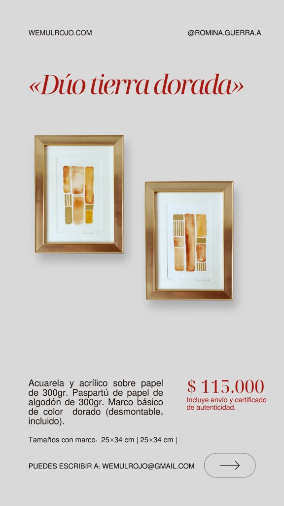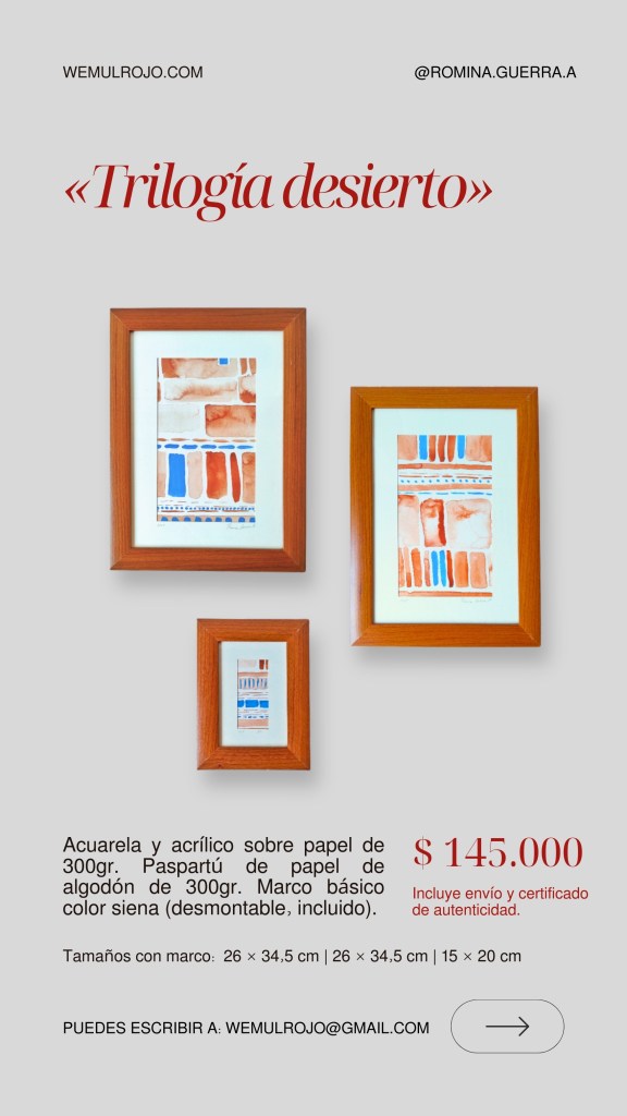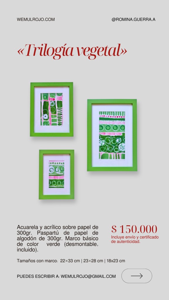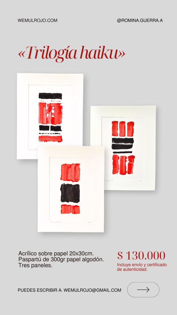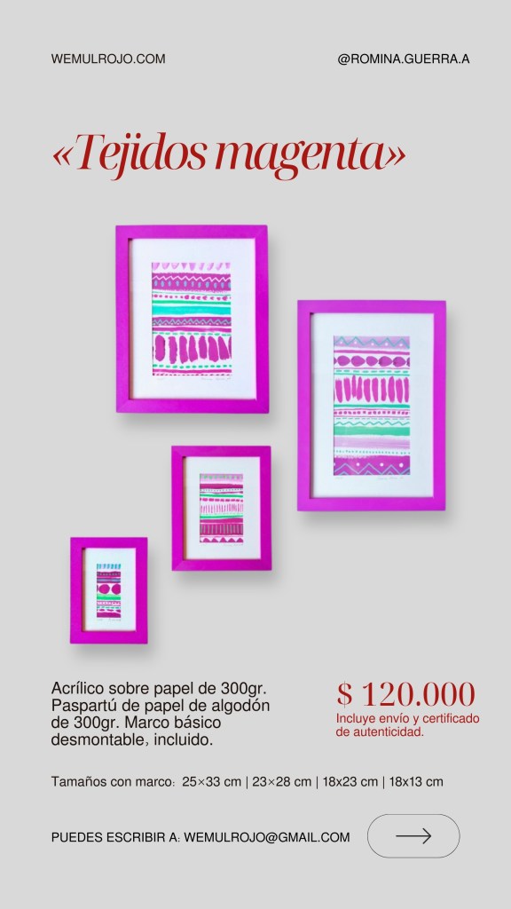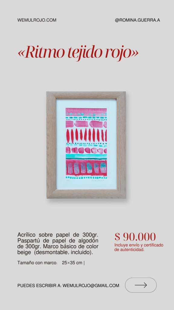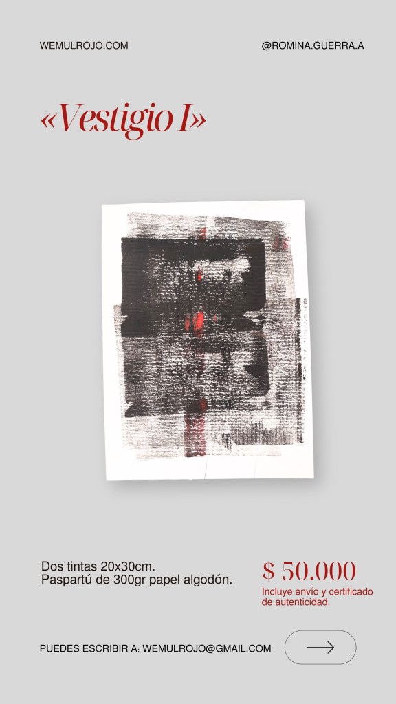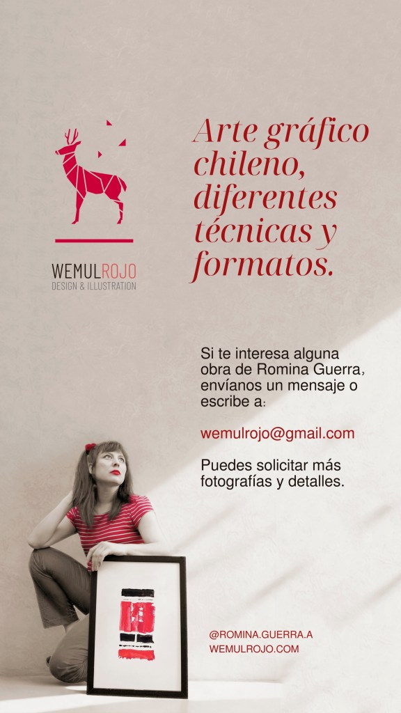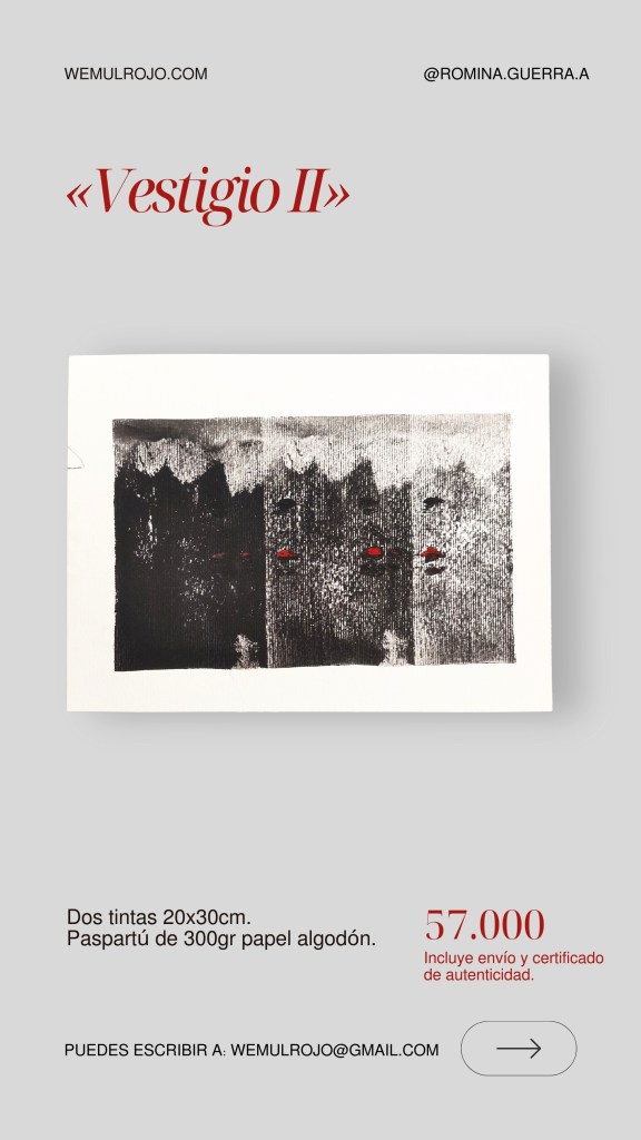 Este es el catálogo actual 2026 de las obras gráficas de Romina Guerra A. Puedes solicitar más fotografías y detalles a nuestro mail: wemulrojo@gmail.com