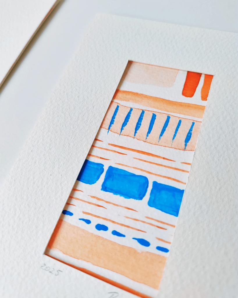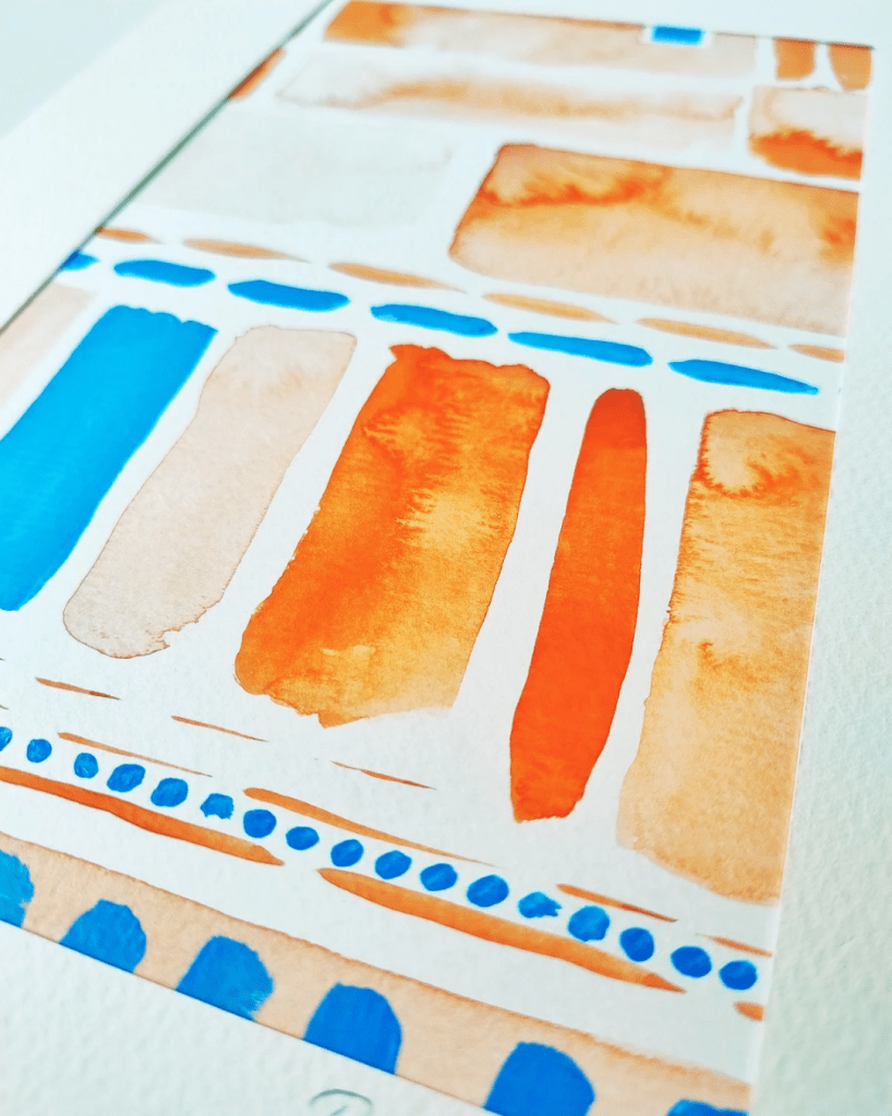 Conjunto de tres obras únicas, inspiradas en los cielos abiertos y las tierras infinitas del desierto. Esta serie abstracta juega con el contraste armónico de colores complementarios, evocando la calma y la fuerza de los paisajes áridos. Combina la transparencia de la acuarela con la intensidad del acrílico.